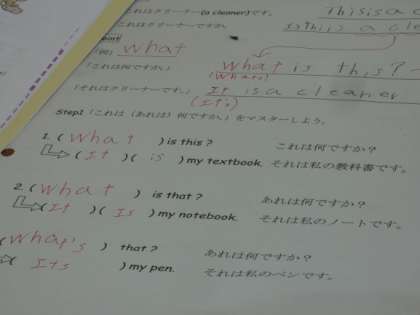 5月17日(金)授業の様子(1年2組 英語) 公開日 2024/05/17 更新日 2024/05/17 今日の西中 「これは何ですか?」など、知らないことを聞くときの言い方を学習しました。 省略していう言い方や答え方についても学び、練習して確実に使えるようにしました。 よく使う表現ですので、しっかり活用できるようにしてほしいと思います。