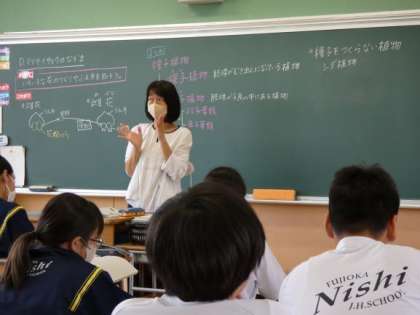 5月17日(金)授業の様子(1年4組 理科) 公開日 2024/05/17 更新日 2024/05/17 今日の西中 花のつくりや増え方の学習をしています。 今日はマツやイチョウの仲間やシダ植物について学びました。 今日の学びを実際に見るため、梅雨時になったら、コケの観察に出かける予定です。