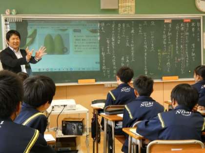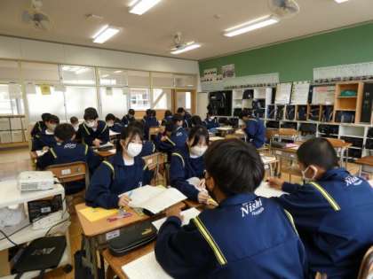全体での話し合いの場面では画像を活用し、「うつくしきもの」がイメージできるようにしていました。現在に通じる感性もあり、みんな興味をもって参加していました。
