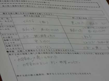他にはどんな化学変化があるのかなど、興味をもって学んでいました。