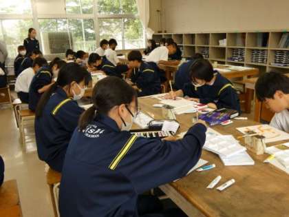 6月10日(月)授業の様子(1年3組 美術) 公開日 2024/06/10 更新日 2024/06/10 今日の西中 絵文字の色塗りに入りました。 イメージどおりの作品に仕上がるように、色を選び、配色を考え、丁寧に塗っています。 完成まであと一歩です。