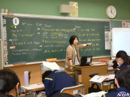 教科書例文を読み取ったり、一般動詞を使って、mustの言い方を学びました。