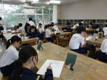 6月18日(火)授業の様子(2年2組 美術) 公開日 2024/06/19 更新日 2024/06/19 今日の西中 自画像の制作に取り組んでいます。 今日は、特徴をとらえて表現することを重点に、鏡の中の自分をよく見て描いていました。 立体的で柔らかい自画像になってきました。みんなとても上手です。