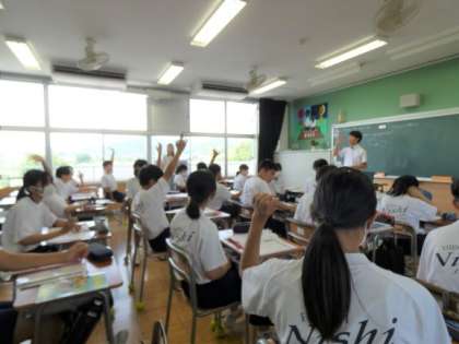 7月2日(火)授業の様子(1年4組 英語) 公開日 2024/07/02 更新日 2024/07/02 今日の西中 複数形の表現について学習しています。 友達に筆箱の中身を尋ね、答える活動を行いました。 複数形の表記のパターンを思い出しながら、書く練習も行いました。