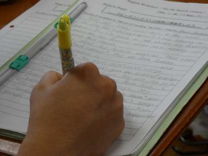 スピーチコンテストの原稿を仕上げていました。