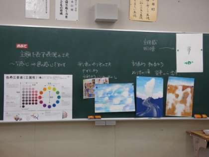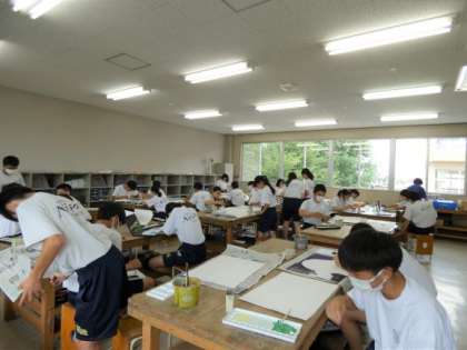 7月10日(水)授業の様子(3年1組 美術) 公開日 2024/07/10 更新日 2024/07/10 今日の西中 想像画の制作に取り組んでいます。 表現したい主題が伝わるように、色をぼかしたりいろいろな道具を使って塗ったりと工夫していました。