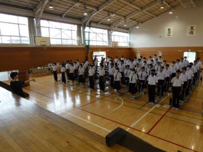 2学期の職場体験学習に向けて、講師の方をお招きしてマナーアップ講習会が行われました。