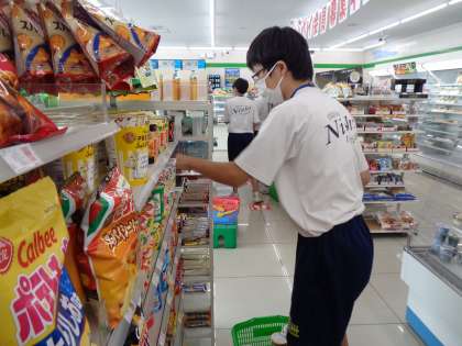ファミリーマート藤岡バイパス店では3名の生徒が体験活動を行っています。伺ったときはお店の方に教えていただきながら、品出し、陳列の仕事を頑張っていました。お客様が気持ちよくお買い物をできるように、工夫しながらのお仕事です。