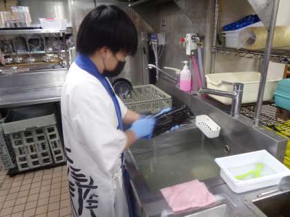食器洗い機を使った洗い物や、チラシの作成の仕事を行っていました。