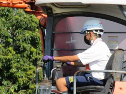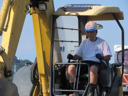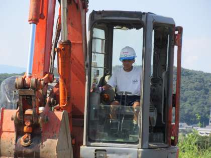 青木土建では3名の生徒が体験活動を行っています。担当教員が伺ったときは、3名とも会社敷地内で、重機であるパワーショベルの操作体験をさせていただいているところでした。高台にある敷地からは前橋方面までが見渡せる眺めの良さが印象的でした。専門の監督さんがそばにつき、安全な配慮のもと、操作指導をしていただきました。高価な重機を操作できる機会は、なかなか持てるものではありません。難しかったとは思いますが、大変貴重な体験をさせていただきました。 (ご担当者の監督のもとの、私有地内での操作体験です)