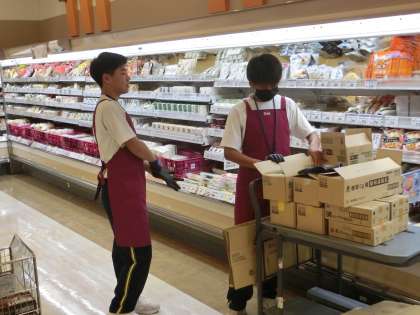 9月5日(木)チャレンジウィークの様子(ベルク) 公開日 2024/09/05 更新日 2024/09/05 今日の西中 事業所での仕事も3日目になり、生徒たちも慣れてきました。 それぞれに品出しをする担当が割り振られ、任された仕事を一生懸命に行っています。また、早く終わった場合は助け合い、協力して活動しています。