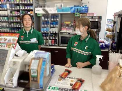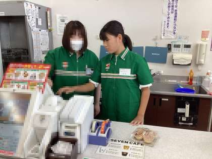 セブンイレブン鮎川店の様子です。店員さんからレジ操作を教えてもらいました。