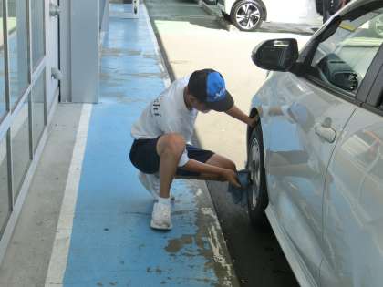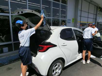 ネッツトヨタでは、お客様の車の洗車後の拭き上げ作業を任せてもらっています。トヨタの従業員の方からも、「細かいところまでしっかりと拭いてくれるので、とても助かります」と高評価をいただきました。