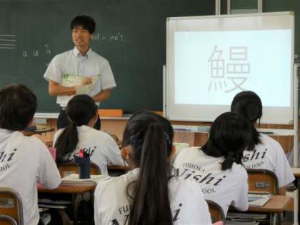 ”Can you  read〜?”の質問で、魚の種類を書いた漢字を聞きました。