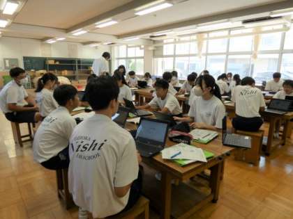 教科書やタブレットを使って、ドライヤーの仕組みを調べたり、QRコードで分解シュミレーションしたりしました。