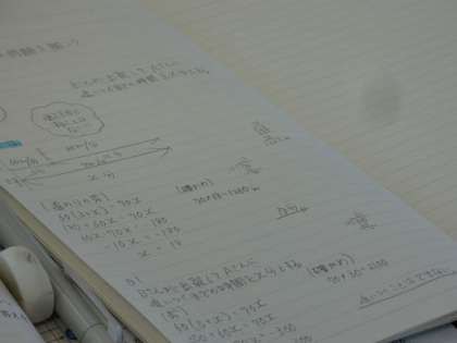 文章から方程式を作る手順を理解して、意欲的に問題に取り組んでいました。活用できるように頑張ってほしいと思います。