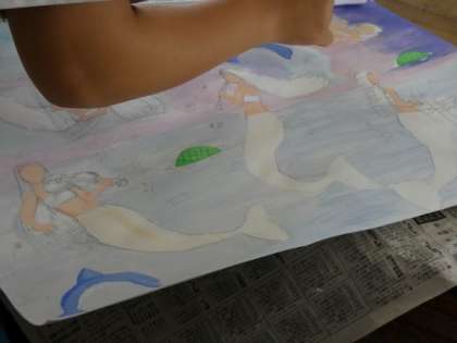 空想画の完成に向けて、集中して取り組んでいました。
