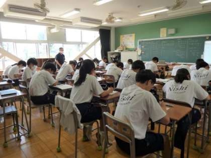 10月1日(火)授業の様子(3年2組 数学) 公開日 2024/10/01 更新日 2024/10/01 今日の西中 相似な図形についての学習を進めています。 今日は、相似比とはどのようなものかを知りました。その考え方を活用して、いろいろな練習問題に取り組んでいました。 明日の実力テストも頑張ってほしいと思います。