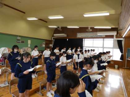 10月4日(金)授業の様子(3年1組 音楽) 公開日 2024/10/04 更新日 2024/10/04 今日の西中 西翔祭での発表曲は、「友〜旅立ちの時〜」です。 曲の特徴を意識して、しっとり歌い上げていました。 担当教員の言葉をメモに取る姿が見られ、意欲的に取り組んでいます。