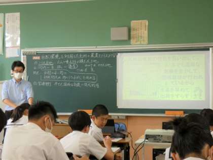 10月7日(月)授業の様子(2年3組 社会) 公開日 2024/10/07 更新日 2024/10/07 今日の西中 九州の農業について学習しています。 自然環境を生かしてどのような農業が盛んなのか、それはなぜか等、資料を元に活発な意見が出されていました。 人々の工夫や効率的な作業に関心が高まりました。