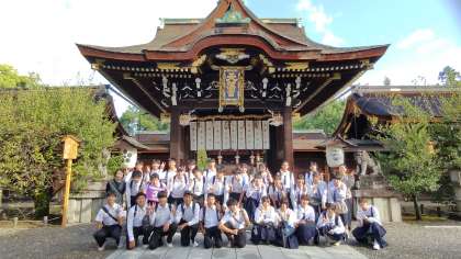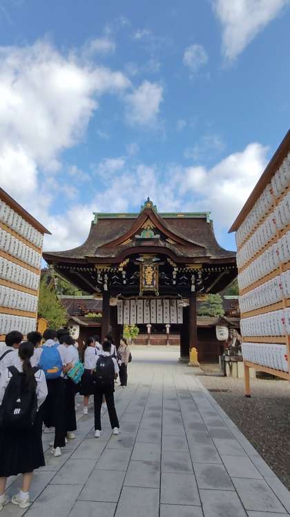 3組、北野天満宮に到着しました。ご祈祷を受けて、学業成就、合格祈願をしました。