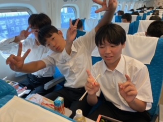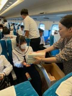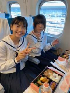 京都駅で、アクシデント11分遅れで出発しました。早速、昼食です。
