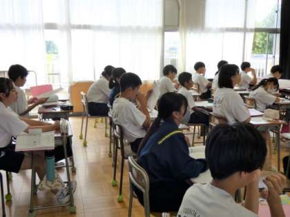 10月15日(火)授業の様子(1年4組 英語) 公開日 2024/10/15 更新日 2024/10/15 今日の西中 三人称の否定型について学習しました。 休日の過ごし方を想起し、”doesn't”を使って作文し、友達に紹介する活動を行いました。