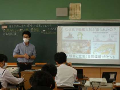 10月16日(水)授業の様子(2年3組 社会) 公開日 2024/10/16 更新日 2024/10/16 今日の西中 日本各地の自然と産業のつながりの特徴について学習しています。 今日は、瀬戸内地方の自然環境と産業とのつながりを調べました。 なぜ呉で戦艦大和が製造されたのかを課題として、自然環境を活用した産業の発展について考えることができました。