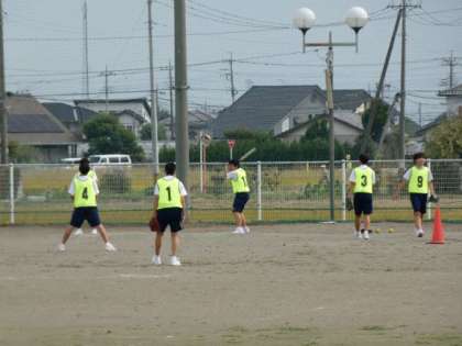 チームごとに投球練習や打球練習をし、後半はゲームをしました。