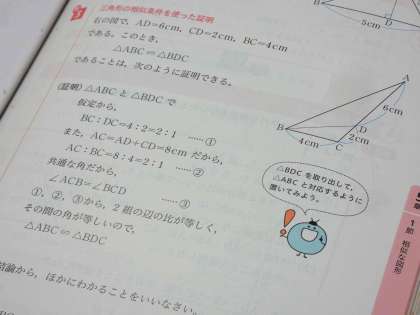 どことどこの比が同じになっているかをよく考え筋道が通るように証明していました。
