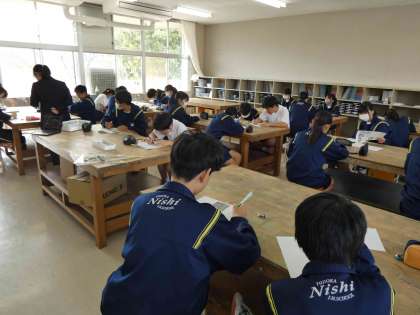 10月21日(月)授業の様子(2年3組 美術) 公開日 2024/10/21 更新日 2024/10/21 今日の西中 立体感や奥行きを表現する技法について学んでいます。 今日は、透視図法に挑戦しました。 垂直や平行を正確にかき、とても整った美しいデザインができていました。