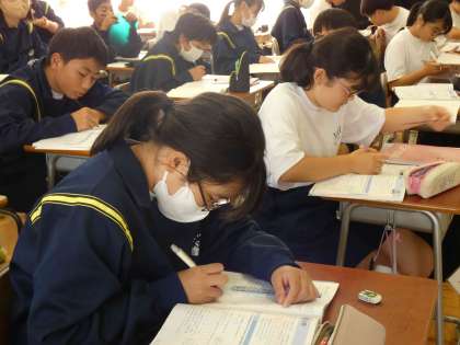 10月22日(火)授業の様子(1年4組 数学) 公開日 2024/10/22 更新日 2024/10/22 今日の西中 比例の学習のまとめをしました。 ポイントになる考え方や用語を復習し、一人一人問題に取り組みました。