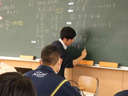 11月1日(金)授業の様子(1年3組 数学) 公開日 2024/11/02 更新日 2024/11/02 今日の西中 反比例の式を導き出す方法を考えました。 後半は、単元のまとめとして、たくさんの問題に取り組みました。