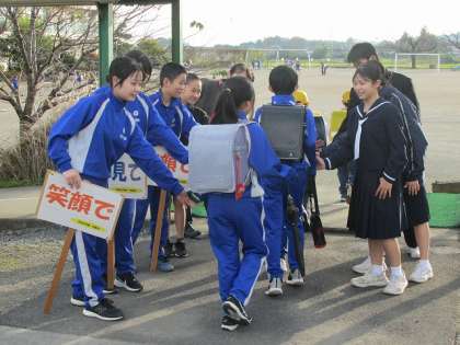 平井小では、いつにも増して笑顔で明るいあいさつが交わされていました。