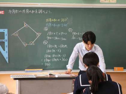 なぜ360°になるかを理論的に証明し、外角を一点に集めると円ができることから、視覚的にも理解することができました。