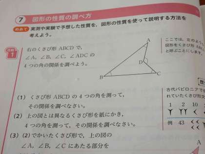 くさび形の角について、図形の性質を証明する方法を考えました。