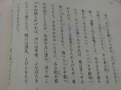 11月11日(月)授業の様子(2年2組 国語) 公開日 2024/11/12 更新日 2024/11/12 今日の西中 平家物語「扇の的」の読解を進めています。 今日は、那須与一が扇の的を射る場面の読解をしました。 音読では、難しい表現や読みに苦戦しましたが、しっかり取り組むことができました。