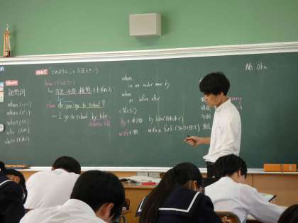 11月12日(火)授業の様子(1年4組 英語) 公開日 2024/11/12 更新日 2024/11/12 今日の西中 'how'を使って、「どのように〜?」と方法や手段、様子を聞く表現について学習しました。 これまで、「何」「いつ」「どこ」などの表現を学んできました。 ここでは、体調や、年齢、数など、’how’と組み合わせていろいろな表現ができることを知りました。