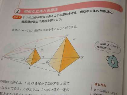 今日は、相似な立体の相似比と表面積の比がどうなっているか考えました。