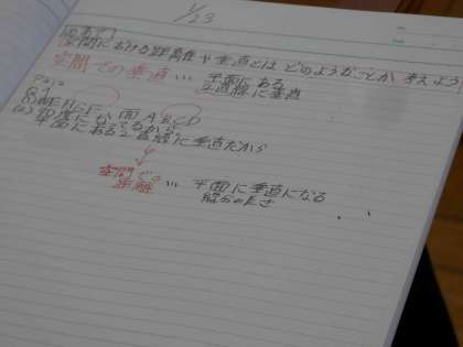 今日は、空間の距離や垂直とはどういうことか考えました。