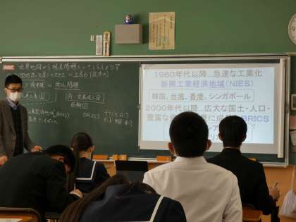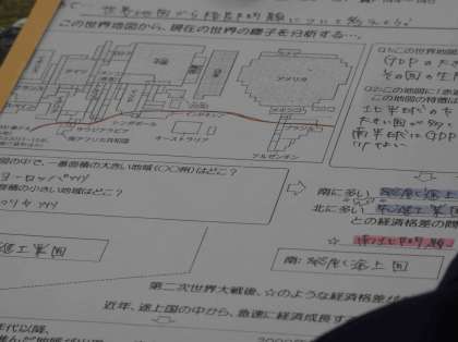 1月23日(木)授業の様子(3年3組 社会) 公開日 2025/01/24 更新日 2025/01/24 今日の西中 世界地図に視点を当て、格差問題を考えました。 これまでにどのように世界の国々が発展してきたか、現在どのような格差問題があるか等、資料で調べたり話し合ったりしました。