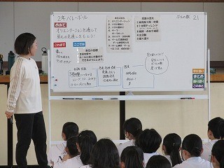 体育も、男女別にせず、学級毎に授業を行うことが一般的になっています。また、ホワイトボードを活用し、学習の流れやポイントを文字で確認することも日常的に行われています。