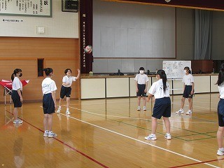 球技大会を控え、バレーボールの実技に取り組んでいます。