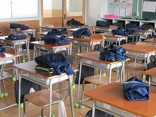 そして、このクラスが体育館に居る時のホームルームをのぞくと、脱いだ体操着の上着が、みんなきちんと机の上にたたまれていました。授業の生徒の様子も、人が居ない教室の様子も、とても清々しかったです。