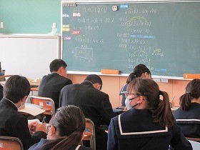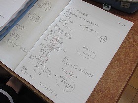 板書事項をノートにただ写すだけでなく、ポイントや重要用語・公式などを余白に丸印で囲んで目立つように記載して、復習に役立てようとノート整理を工夫している生徒がいました。意欲的な取り組みが素晴らしいと思いました。