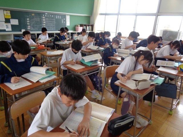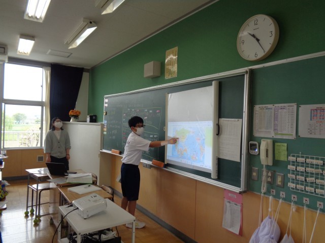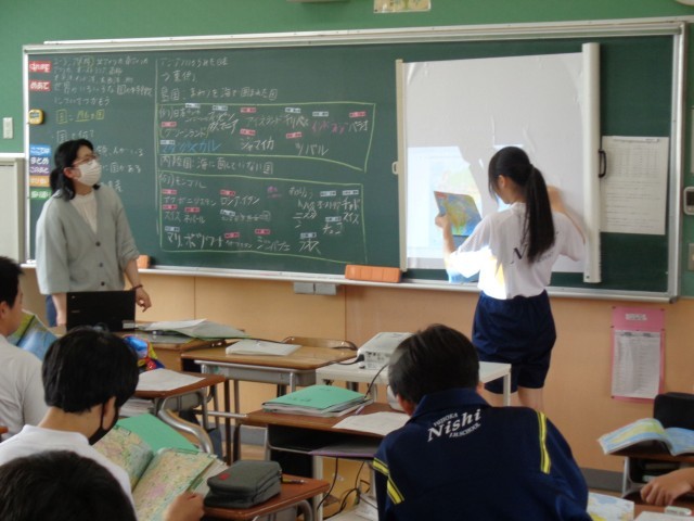 「島国」と「内陸国」、人口の多い国と少ない国など、先生から出された課題を次々と調べていました。夢中になって地図帳を調べる姿に、一人一人の「やる気」を感じました。