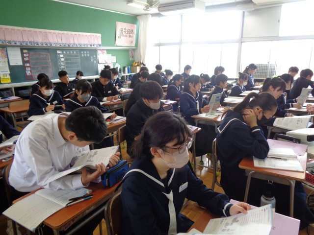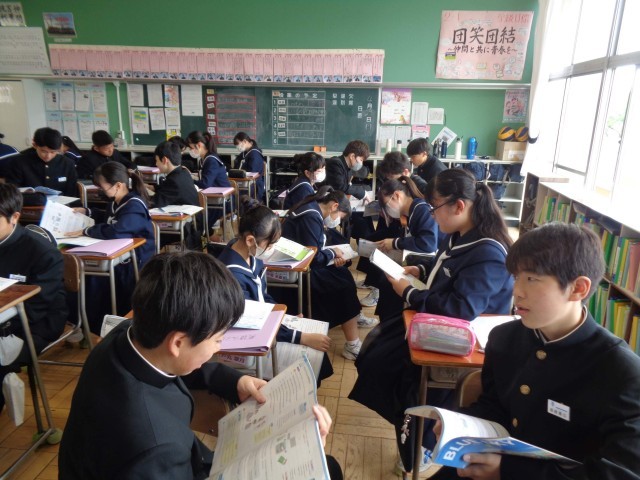まずは教科書の会話文を一人一人で読んだ後、二人組で練習します。みんなよく声が出せていました。