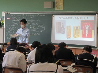 生活習慣や商品を現代と比較して関心を高める工夫がなされており、その成果により活発な意見が聞かれるなど生徒の意欲的な学習活動への参加がみられました。