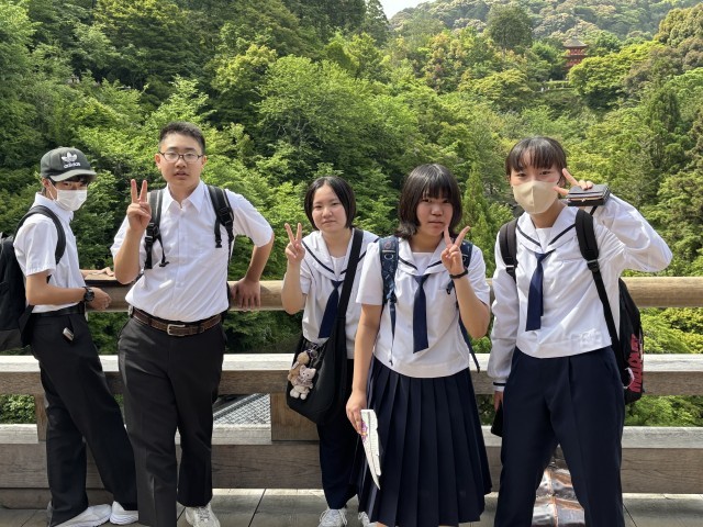 京都班別活動の様子です。何とかバスに乗り、清水寺に到着しました。
