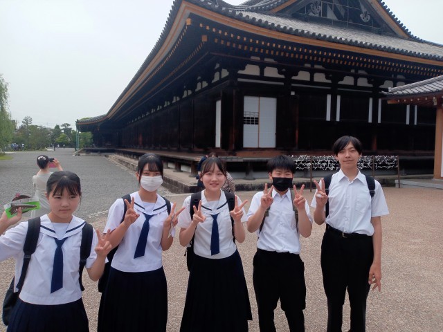 京都班別学習の様子。三十三間堂はそれ程混んでなく、快適に見学ができています。
